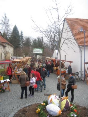 Poslední březnovou sobotu dopoledne se stal jarmareční prostor za galerií v Týně nad Vltavou dějištěm dalších Velikonočních farmářských trhů. Meteorology předpovídané deštivé počasí sice přišlo až o den později, ale přesto mohlo být lépe. Vždyť tepleji bylo i o adventních trzích v prosinci. Všechny účastníky tak "zahřála" alespoň příjemná atmosféra, která na trzích pravidelně panuje. Tentokrát se o ni postarala především oblíbená beatfolková skupina Epy de Mye, která dokázala, byť oslabená o jednoho kytaristu, zaujmout diváky všech generací písněmi svými i převzatými. Děti si v dětské dílničce mohly vyzkoušet barvení a zdobení vajíček či uplést pomlázku z vrbového proutí. Své umění zde ukázal i řezbář Ondřej Drábek z Choustníku, který během dopoledne s pomocí motorové pily, různých dlát a především páru šikovných rukou vykouzlil z kusu dřeva krásné kuře, které na svět vykouklo ze skořápky. Ke koupi zde byly např. dřevěné hračky a dekorace do zahrady, různé bylinky, sazeničky, koření, užitková i dekorativní keramika, šperky, pletené výrobky, stále více vzácný med, jablka, výborný jablečný mošt a chybět samozřejmě nemohla ani velikonoční dekorace či pomlázky (foto v příloze). Líbily se Vám letošní velikonoční trhy? Nebo jste je snad nestihli a rádi byste navštívili ty další? Zde jsou termíny farmářských trhů pro rok 2015: Vltavotýnské farmářské trhy (so 25.7.), Dušičkové farmářské trhy (so 24.10.) a Adventní farámářské trhy (ne 13.12.). Přejeme Vám příjemné prožití velikonočních svátků!