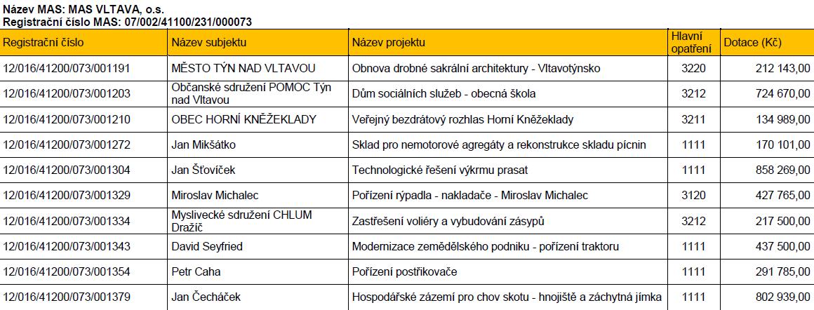 Všech 10 žádostí, které MAS Vltava zaregistrovala v rámci 6.výzvy na předkládání žádostí o dotaci z Programu rozvoje venkova, osa IV, Leader, úspěšně prošlo kontrolou přijatelnosti na RO SZIF v Českých Budějovicích. V tuto chvíli jsou připravovány dohody o poskytnutí dotace, které by obě strany měly podepsat nejpozději v listopadu letošního roku. Seznam úspěšných projektů naleznete v příloze článku.